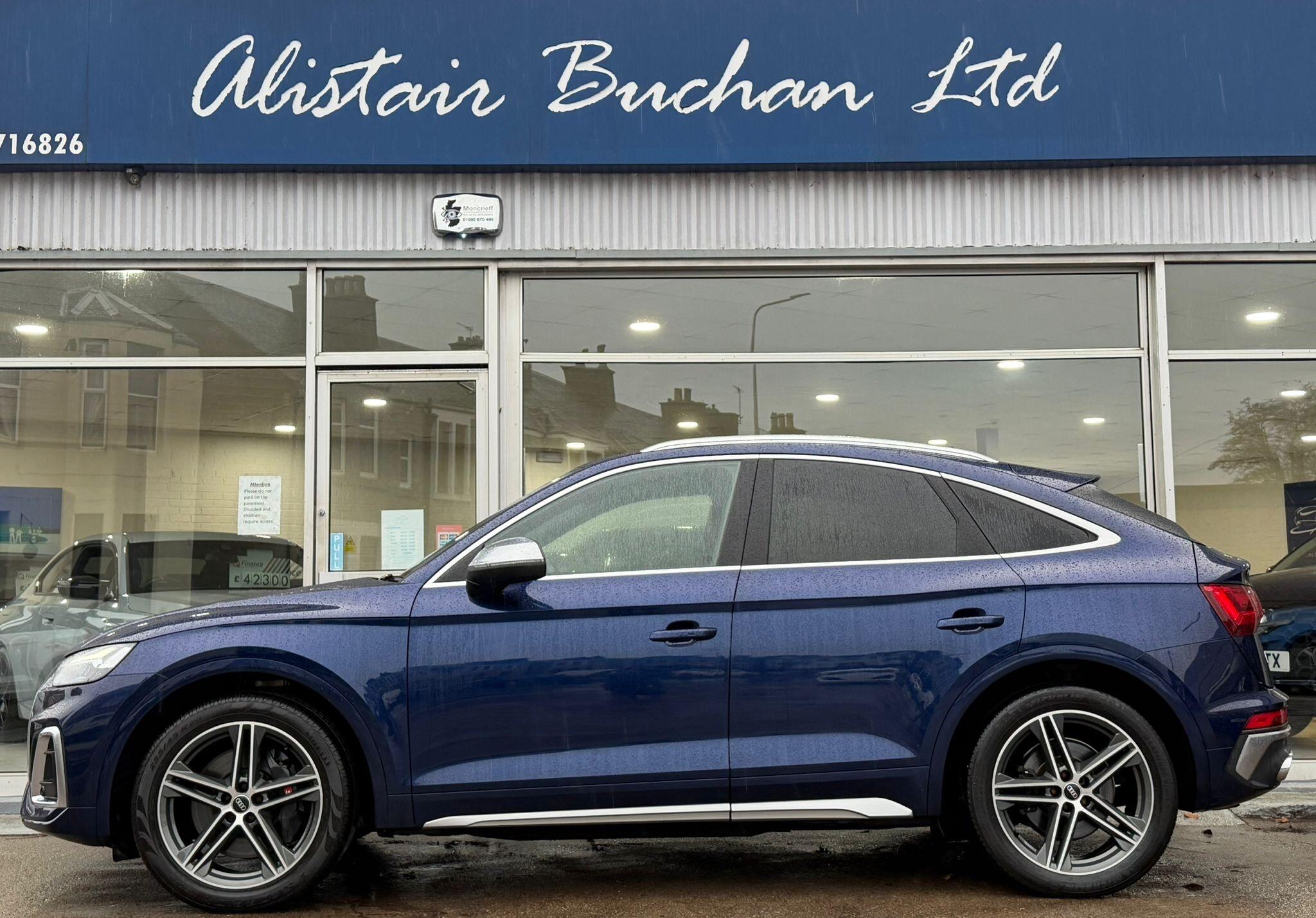 2023 USED Audi SQ5 3.0 TDI V6 Sportback Tiptronic quattro Euro 6 (s/s) 5dr is offered to you for sale in , Kirkcaldy, finished in Blue, this USED Audi SQ5 3.0 TDI V6 Sportback Tiptronic quattro Euro 6 (s/s) 5dr is one of many handpicked used cars that used car dealer Alistair Buchan LTD, East Wemyss, Kirkcaldy have available for sale.
