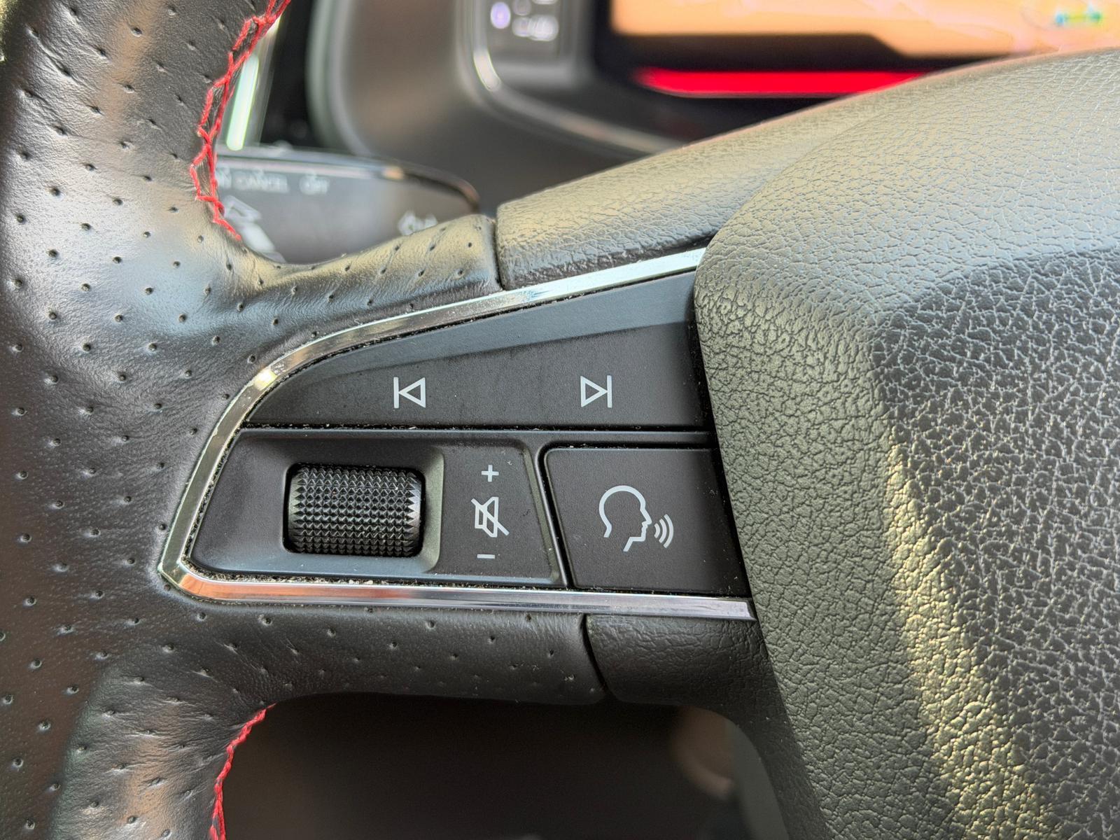 - Steering Wheel - Flat-Bottomed Perforated Leather with Red Stitching and FR Logo