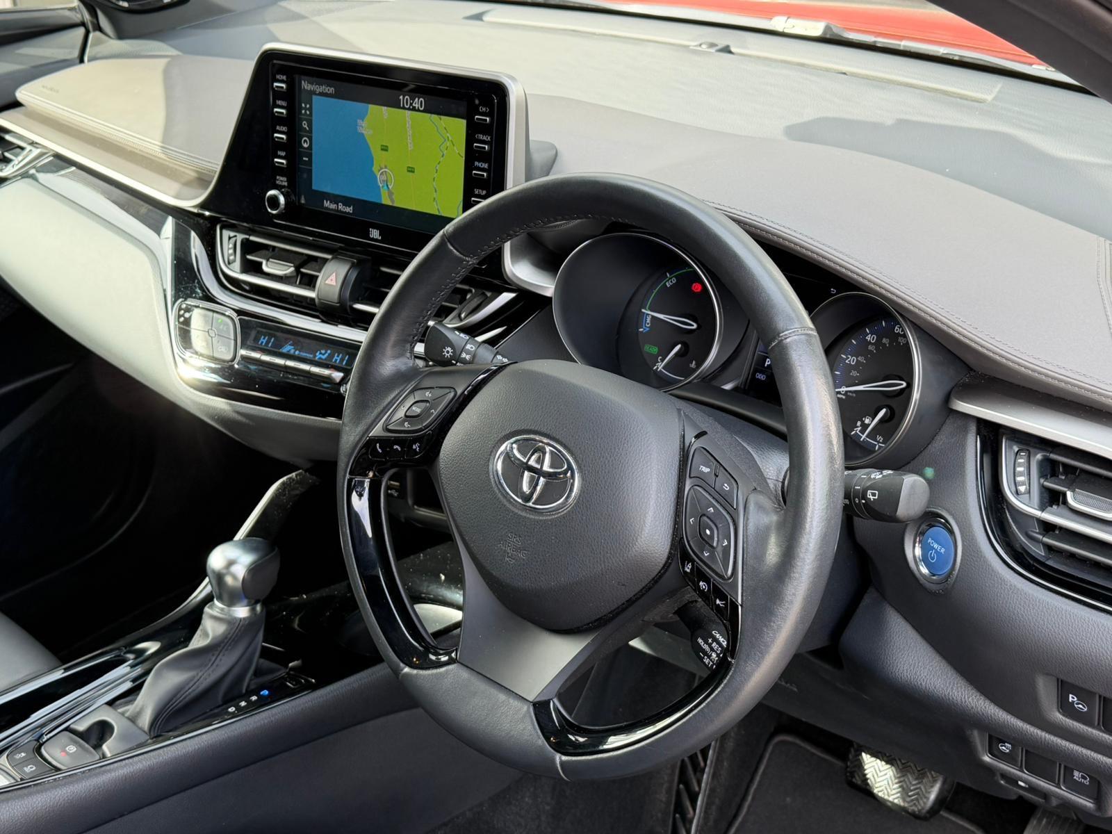 This 2021 Toyota C-HR VVT-h Orange Edition boasts exceptionally low mileage for its age, having covered just 20,000 miles. This Euro 6 compliant 2.0 litre petrol hybrid is presented with a clear vehicle history check and will be supplied with a full 12 months MOT for your peace of mind. The Orange Edition trim level comes with a host of desirable features, including the Toyota Touch 2 Multimedia System with a 7 inch display, offering seamless integration with Android Auto and Apple CarPlay. You'll also find the Leather and JBL Pack, which includes a premium branded sound system, and automatic headlights for enhanced visibility.